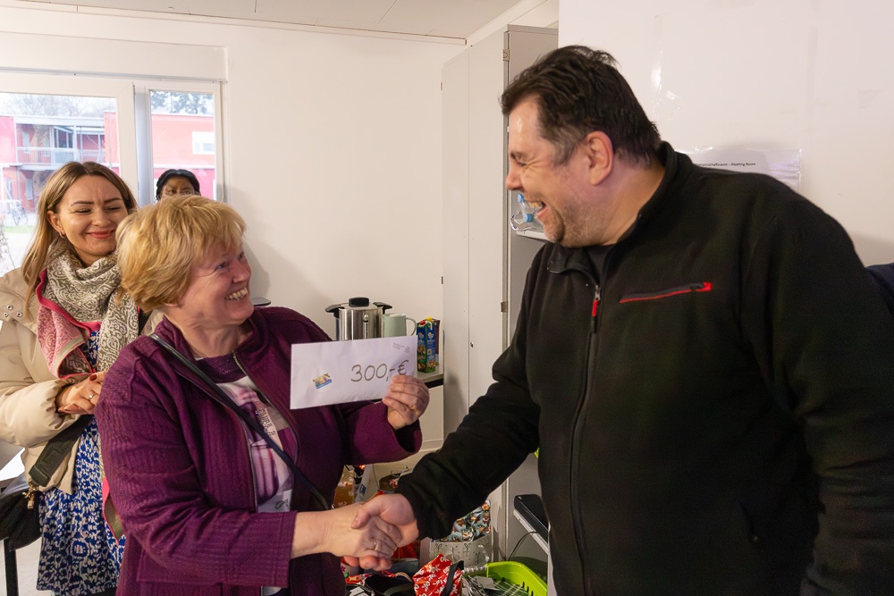 Schulleiterin Annette Prevot überreichte außerdem einen Umschlag mit 300 Euro an den stellvertretenden Leiter Niels Warnken.